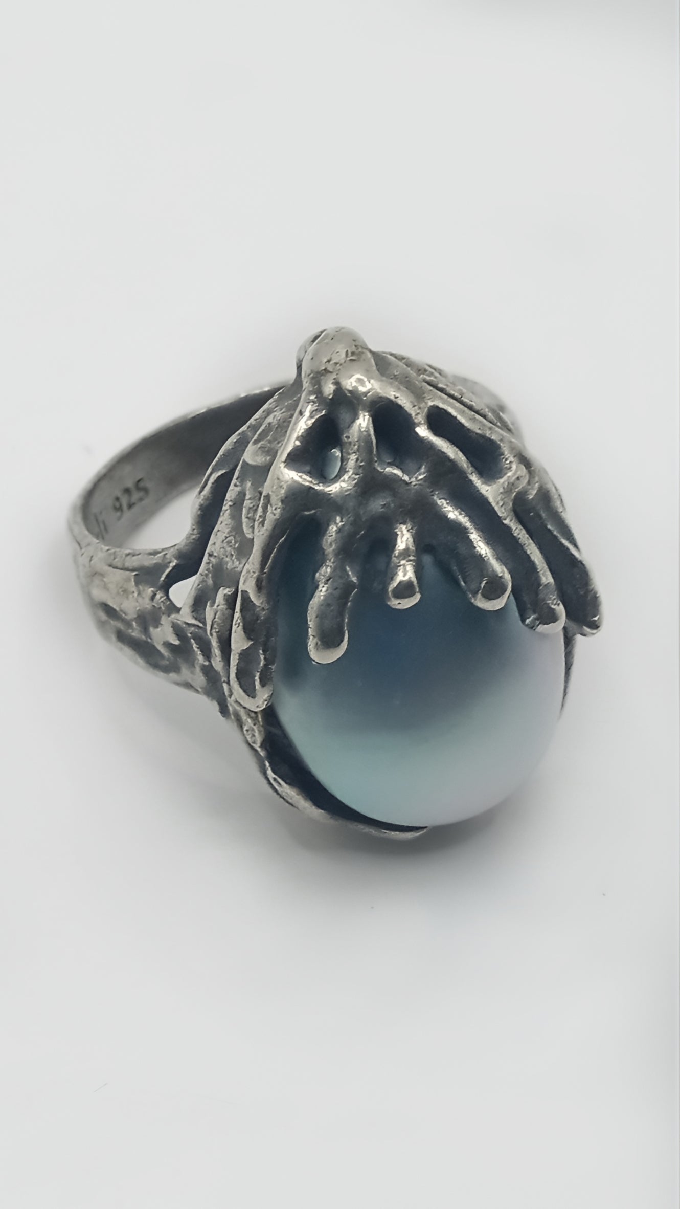 This ring is a beautiful piece of jewelry that is sure to catch the eye of anyone who sees it. The natural pearl inlay adds a unique and elegant touch to the ring, making it stand out from other rings. The silver sterling material used in the ring is durable and long-lasting, ensuring that the ring will remain in good condition for years to come.